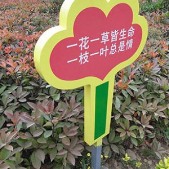 花草牌是指樹立在花草叢中用于提示愛護的標(biāo)識牌。又稱牌或草牌,屬于溫馨提示的范疇。花草牌一般較矮,一般高度在40公分到1.2米之間,是雙面,厚度一般是4公左右。有鋼板的,有純實木的,或上述材質(zhì)相互結(jié),制作工藝為: